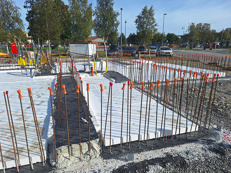Bottenplattan armerad innan gjutning av bottenbjälklag
